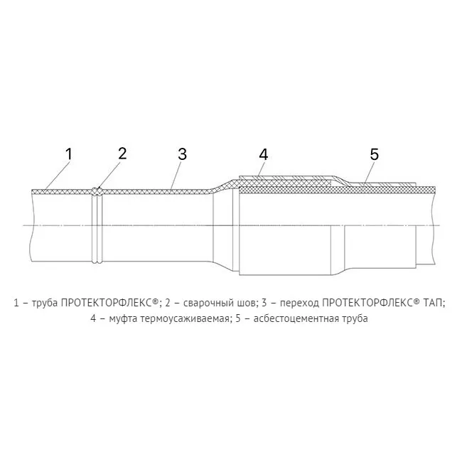 - 100% герметичность соединения с асбестоцементными трубами достигается засчет использования на месте стыка термоусаживаемой муфты.