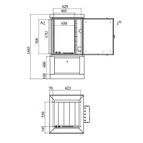 Конструкция изделия предполагает доступ к оборудованию с двух сторон, а также возможность установки систем электропитания и мониторинга.